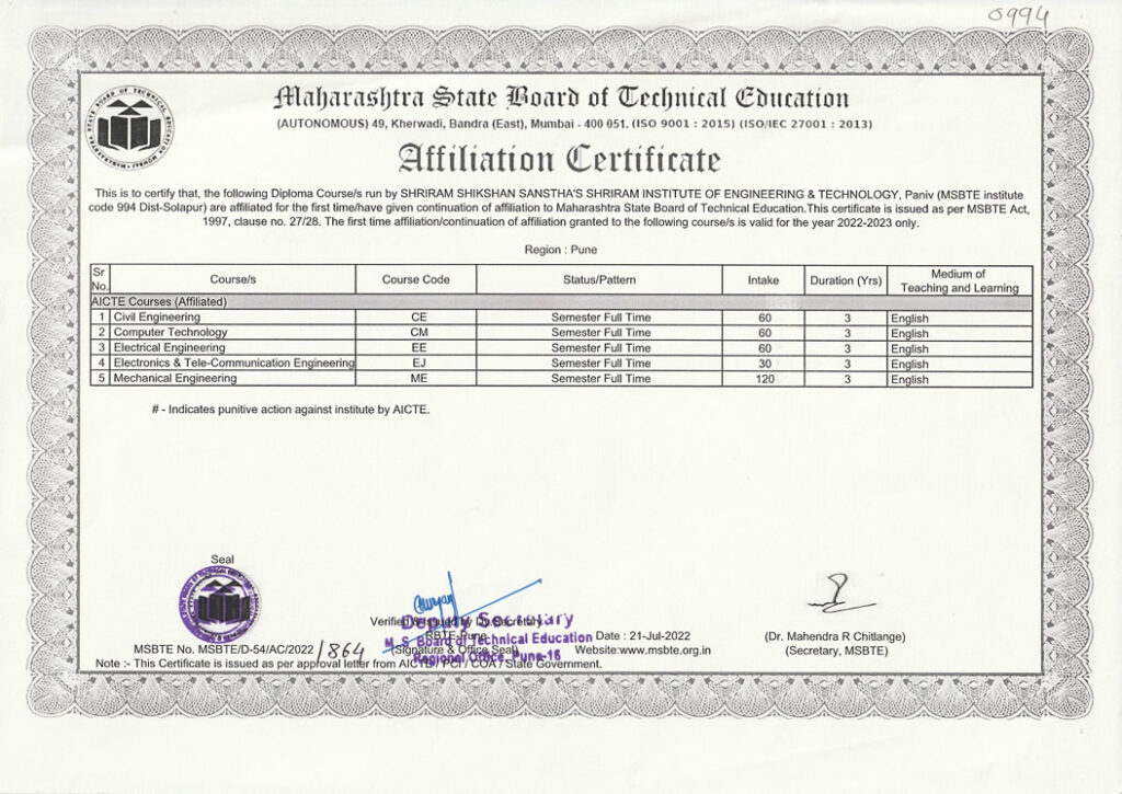 Shriram Institute Of Engineering And Technology (Poly & Degree) Paniv